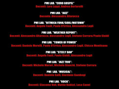In Novembre inizieranno i Laboratori PMI, un’occasione unica per imparare suonando con il supporto dello Staff Docenti PMI. Laboratori in cui si suonerà studiando e approfondendo gli autori più importanti, i brani storici, gli arrangiamenti più significativi e l’approccio ai vari generi musicali con tutto il materiale didattico a disposizione e parti trascritte dai Docenti